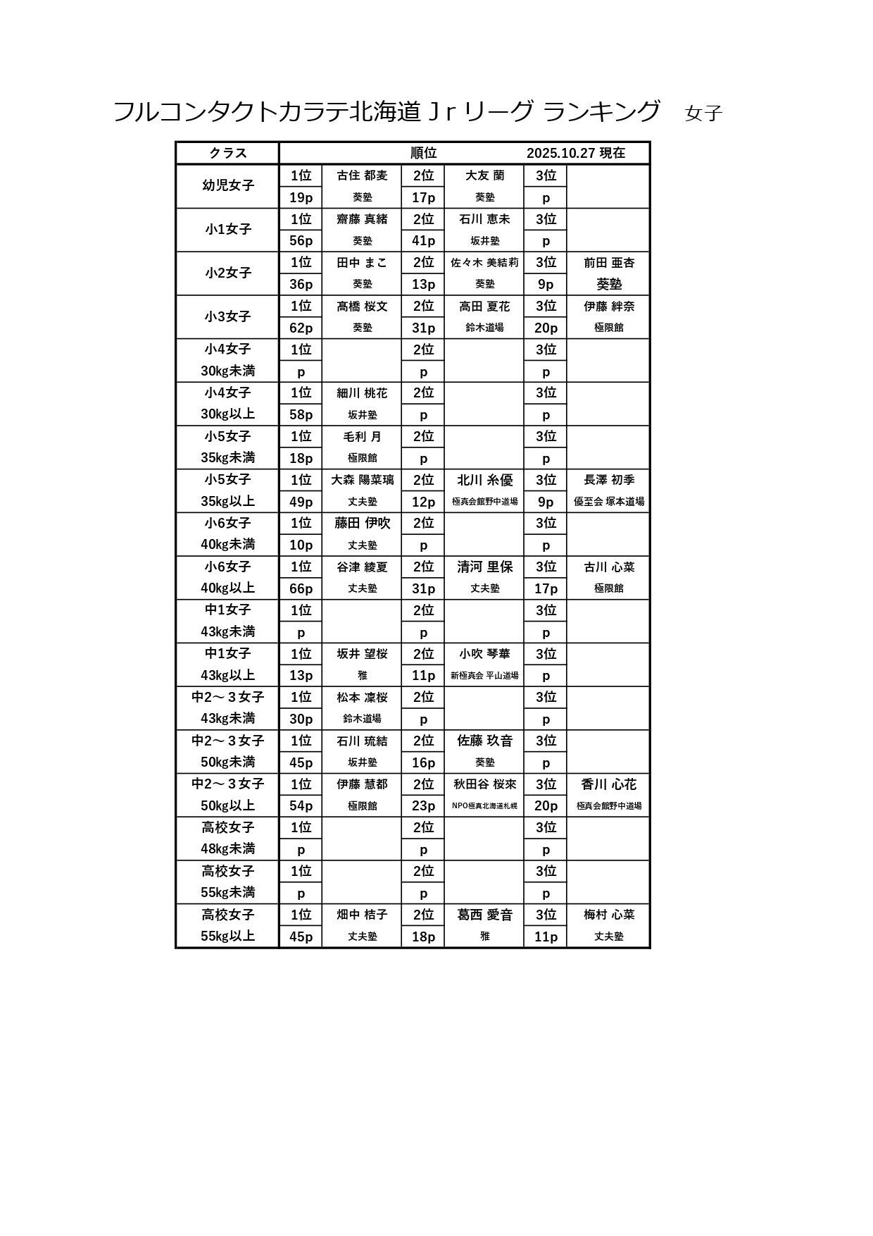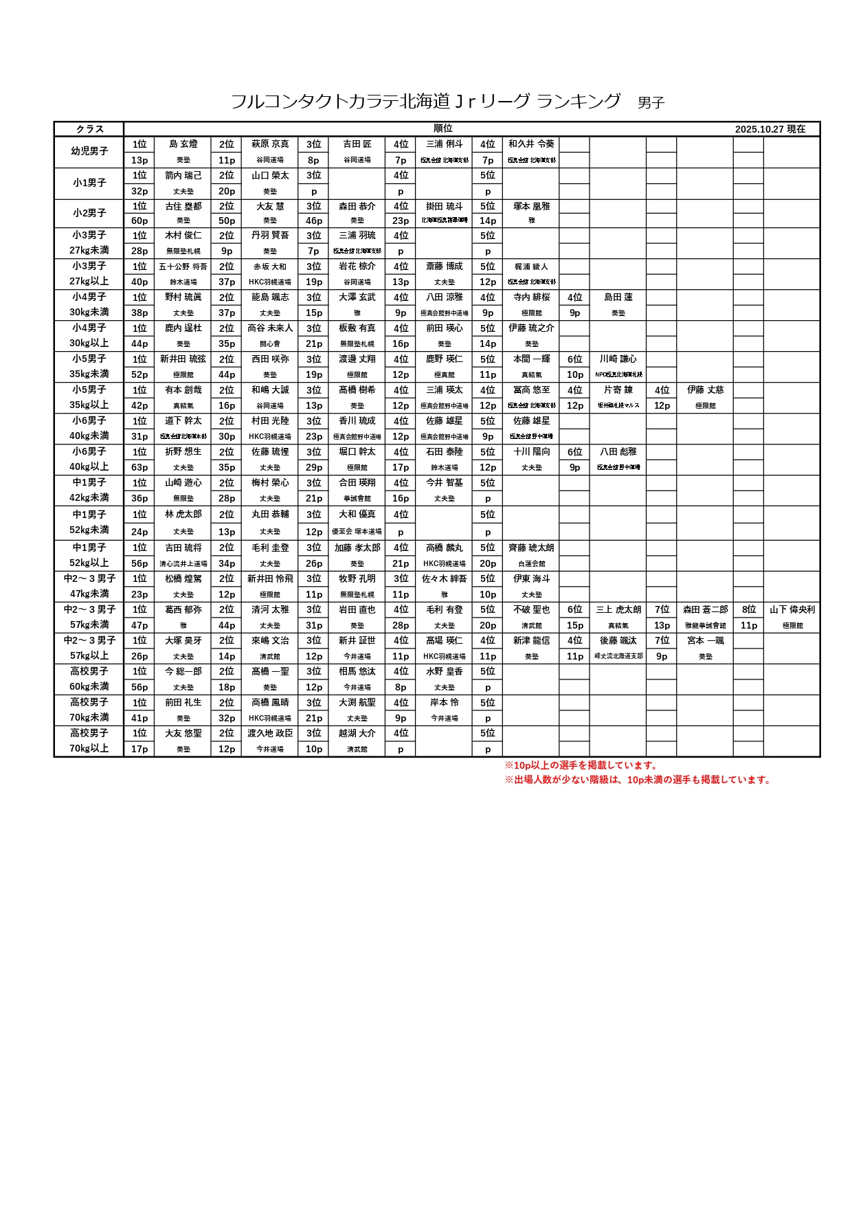 フルコンタクトカラテ北海道Jrリーグ ランキング最新版 2025.10.27.pdf (0.68MB)